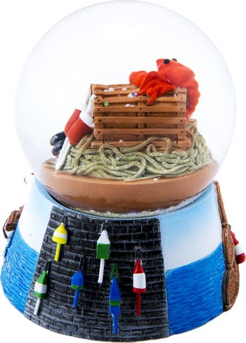 Resin water ball with a lobster in the middle and glitter filling has a resin boat on the outside edge. Measures 65mm. 87-744