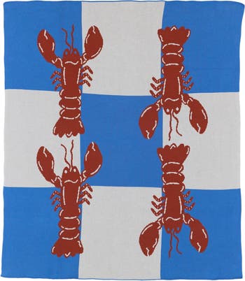 Four lobsters meet a checkerboard backdrop in this punchy pattern by Maddison Ball. A fresh coastal twist in comfy cotton knit. Machine wash on cold and tumble dry on low for easy care.