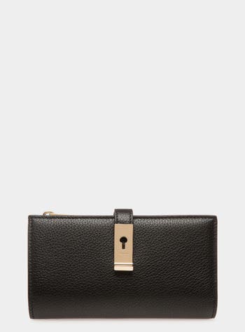 Crafted in grained leather, this Lock Me long wallet features internal card slots, a cash pocket and a zipped coin purse. It fastens via a gold-tone snap button closure with the iconic Lock Me hardware.