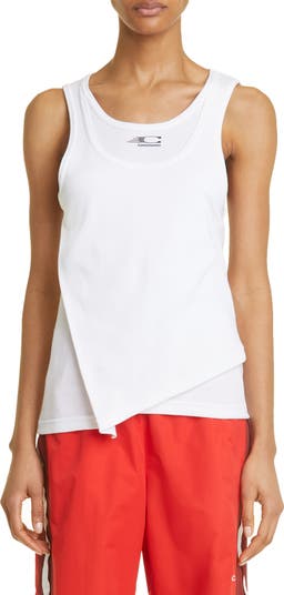 This season's emphasis on the unexpected shows up in the layered neckline and asymmetric hem of a branded tank top cut from ribbed cotton.