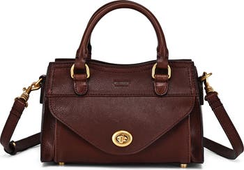 A compact genuine leather satchel designed to deliver classic structure in a refined everyday size. This polished style offers secure storage with timeless appeal.