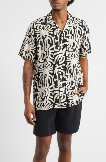 Lightweight and relaxed, this camp shirt made of soft, silky viscose features a swirling black-and-cream abstract print and a fit that invites everyday comfort. Wear it on its own or layered and unbuttoned to change up your look without ever losing your style.