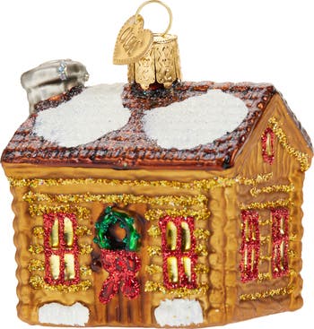 Made from hand-painted, mouth-blown glass, this glitter-dusted log cabin ornament brings festive nostalgia to your holiday decor.