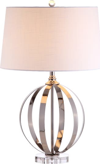 Decorated with a polished nickel orb as a centerpiece, this accent table lamp adds a distinct style element to any vignette. The silver finish refreshes the design with a modern edge, while the crystal base beckons to timeless elegance. A linen drum shade puts the finishing touches on this attractive design.