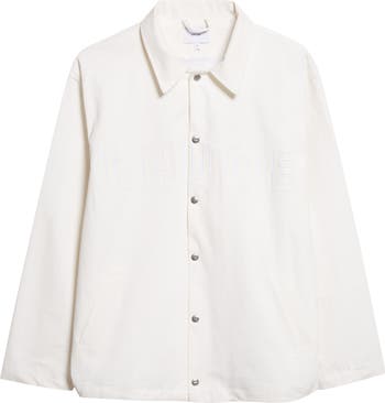 This sleek coach’s jacket keeps branding disciplined with a commanding logo placed incognito at the front so the silhouette leads. A clean row of branded snaps sharpens the placket like a tailored detail, then a drawcord-toggle hem lets you cinch the shape and shift the attitude on demand.
