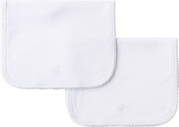 Our burp cloths are a must-have for your baby's wardrobe or your diaper bag! They feature a towel-like texture on the back for excellent absorption and a soft front. Set of 2. White with a charming embroidery detail.