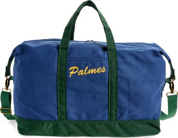 The label continues to draw inspiration from traditional sporting aesthetics with this colorblocked-canvas duffle that brings court styling to your daily wardrobe.