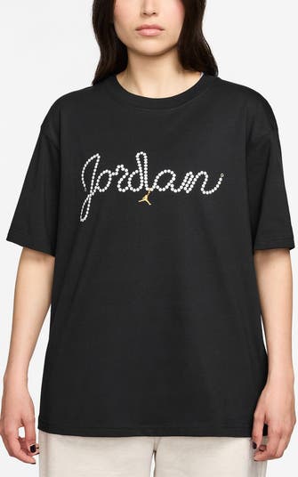 Signature style almost sparkles off this cotton graphic T-shirt highlighted with a Jumpman charm.