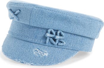Ruslan Baginskiy turns the classic newsboy cap into something extra, extra special with this signature bestseller shaped from distressed denim, then decorated with dimensional embroidery.