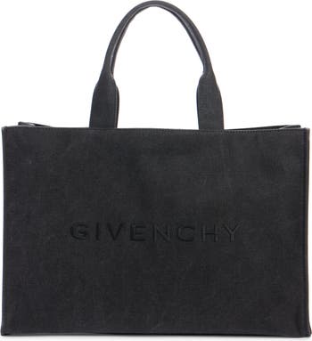 Tonal logo embroidery—the 4Gs on one side, 'Givenchy' on the other—subtly brand this multipurpose coated-canvas tote.