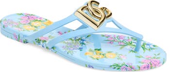 A polished interlocking DG logo highlights the double-strap design of this flip-flop made of water-friendly PVC with a playful floral-print footbed.