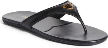 Triangular logo hardware shines on a streamlined flip-flop crafted in Italy from sumptuous lambskin leather.