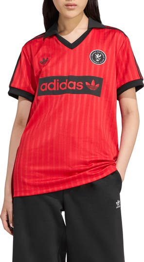 Show off your sporty side in this striped jacquard jersey inspired by vintage styles and emblazoned with heritage adidas logos.