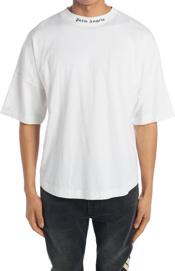 Playing with proportions, this drop-shoulder tee features extended sleeves, a curved hem and a magnified gothic logo spanning the back.