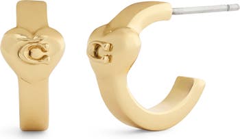 Sculpted C monograms center puffy hearts on these signature huggie-hoop earrings that bring instant shine to your looks.