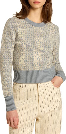 Logo Jacquard Wool & Cashmere Crop Sweater