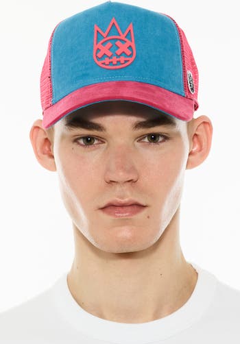 Embrace your individuality in this colorblocked suede trucker hat sporting a classic mesh back and a Shimuchan logo front and center.