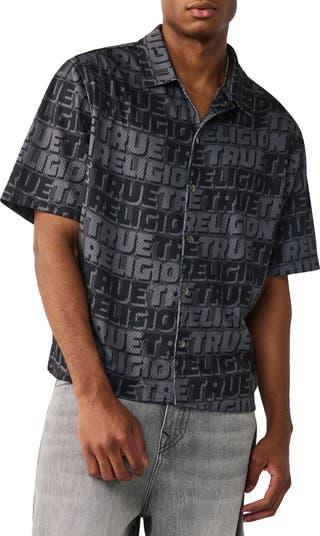 Logo Mesh Short Sleeve Snap-Up Shirt