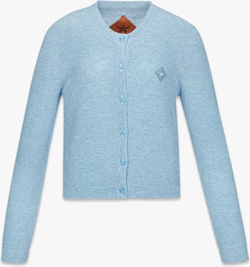 MCM Logo Patch Knit Cardigan, Alternate, color, Blue