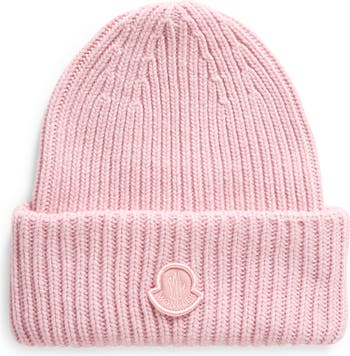 Stay warm on snowy slopes or city streets in this ribbed wool beanie sporting Moncler's easily recognizable logo.