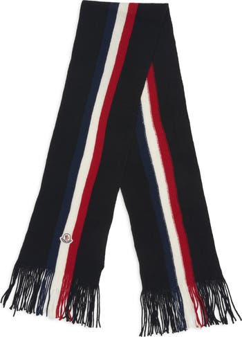 A stripe story rooted in heritage, this luxurious wool scarf pays homage to its après-ski origins with bold French national-colored stripes that glide along its length. Long, flowing fringe elevates the playful edge, making it as chic as it is cozy.