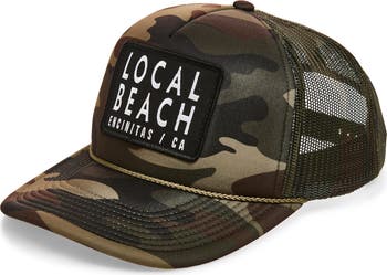 Local Beach Logo Patch Trucker Hat, Main, color, Camo