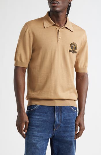 This short-sleeve polo pairs a smooth Italian virgin-wool knit with a dimensional logo patch that brings texture and attitude. A sharp collar and ribbed trim keep the look tailored yet relaxed.