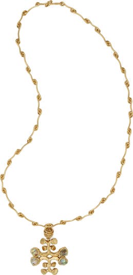 A double-stacked T-logo pendant drapes from a swirly chain in this statement-making necklace that'll showcase your brand affection.
