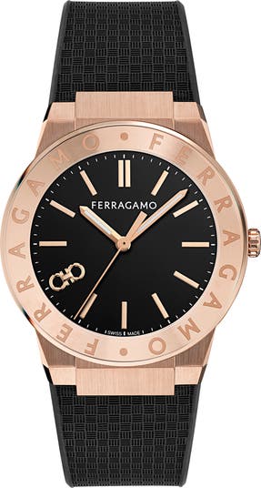 The double-Gancio '8' and brand-etched brushed stainless steel topring encased within the sapphire-crystal face distinguish this classic Swiss-made watch.