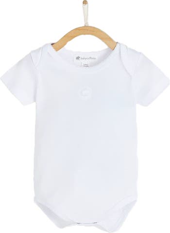 This baby basic pack of 2 soft short sleeve bodysuits made with 100% Pima Cotton is perfect for your baby. This short sleeve bodysuit features a delicate embroidered neckline and sleeves with 3 bottom snaps for easy closure. Solid white with logo bunny embroidered on the chest. Machine wash cold tumble dry low. Imported from Peru
