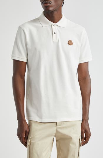 Moncler Logo Snap Placket Cotton Polo, Alternate, color, Bright White