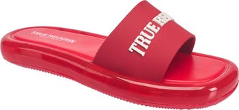 A playful jelly slide featuring a bold True Religion logo strap. Designed with a lightweight, cushioned feel for all-day comfort and effortless casual style.