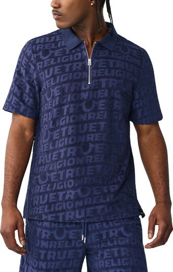 Made from soft terry, this street-style polo stands out with a zip placket and bold jacquard logos that create texture.