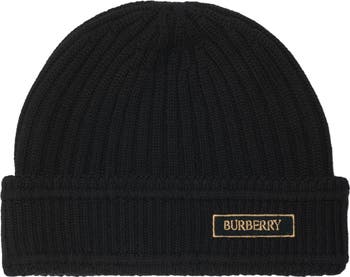 A rib-knit beanie in wool with a contrasting appliquéd logo.
