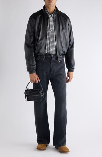 Crafted from supple lambskin leather, this raglan-sleeve bomber jacket is finished with meticulous pickstitching and topstitched elastic at the cuffs and waist.