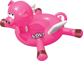 The LOL Flying Pig™ is a fun inflatable that everyone will love. Perfectly sized for one, this little piggy is made of quality materials for durability and long-lasting fun. Comes equipped with 2 grip handles. Pool fun begins... when pigs fly! Suitable for ages 7 years and up. Weight capacity of 200 lbs. Use only under competent adult supervision.