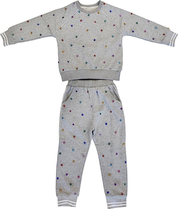 Stylish and cozy trackset featuring rainbow-colored gem embellishments for a touch of sparkle and fun. Ideal for everyday wear, casual outings, or cozy days at home, blending comfort and style effortlessly.