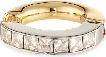 Mixed metals and channel-set, square-cut crystals define the edgy silhouette of this radiant ear cuff that's perfect for day or night.