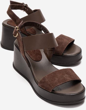 A minimalist yet striking wedge sandal that marries sleek leather and soft suede for modern versatility