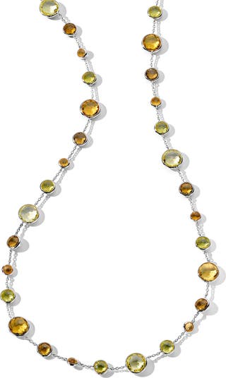 Candy-colored semiprecious stones in bezel settings sweeten this delicate station necklace forged from gleaming sterling silver.