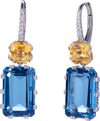 London Blue Topaz & Citrine Earrings with Diamonds