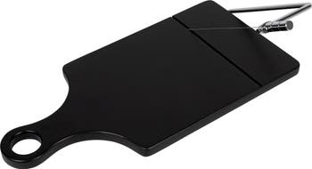 - Made from durable acacia wood and featuring a sleek black stainless steel end grain for effortless cheese slicing