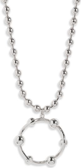 A beaded pendant echoes the long ball chain of this bubbly necklace.