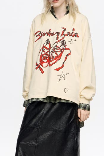 Bimba y Lola Long Ballerinas Logo Sweatshirt, Alternate, color, Ivory