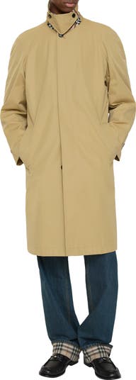 Inspired by our signature styles, an Italian-made car coat refreshed in lightweight cotton canvas with a soft hand feel. The style is tailored to a relaxed fit with a neat concealed closure and partially lined with Burberry Check in signature sand beige.||Single-breasted button closure|Throat latch|Side welt pockets|Button-tab cuffs|Back button vent|Burberry Check lining and undercollar|Comes with a garment bag