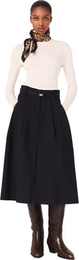 Between Paris and New York, the wardrobe stands out with its assertive pieces. Structured elegance, always with an unexpected twist. Made from cotton, this long skirt creates a minimalist and sophisticated look. The contrasting poplin band neatly accentuates the waist, while a thin logo belt adds a signature touch. Discreet pockets accentuate its smart look and add a practical touch. A classic revisited, pair it with a white shirt or a close-fitting knit for a preppy and graphic look.