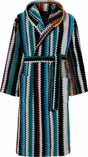 Long Curt Chevron Cotton Terry Hooded Bathrobe