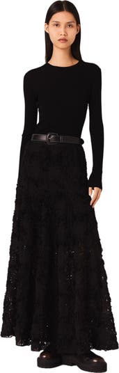 This long skirt is made from tulle embellished with embroidered flowers. It has a full, flared style, for airy elegance with every step. It has a short lining for optimum comfort, and an elasticated waistband. It's a great all-rounder for any occasion. Team it with a top and ballet flats made from mesh for a flattering look.