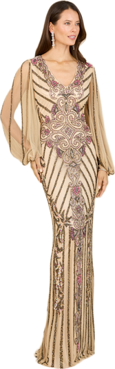 Long Flutter Sleeves Beaded Dress