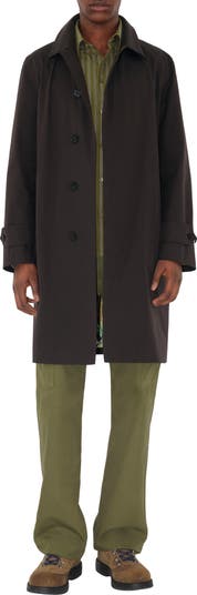 A fresh expression of the Burberry car coat, created in partnership with Highgrove Gardens, which surround the private residence of Their Majesties King Charles III and Queen Camilla. A celebration of British craft, the design is made in Yorkshire from lightweight cotton gabardine with a silk twill lining featuring artwork by the London-based artist Helen Bullock. The print captures the focal point of Highgrove’s Kitchen Garden – an enchanting Italian fountain covered in moss. Tailored to a regular fit with set-in sleeves.||Single-breasted button closure|Side welt pockets|Button-tab cuffs|Back vent|Printed silk lining|Comes with a garment bag|The Highgrove mark is used under licence from A G Carrick Limited